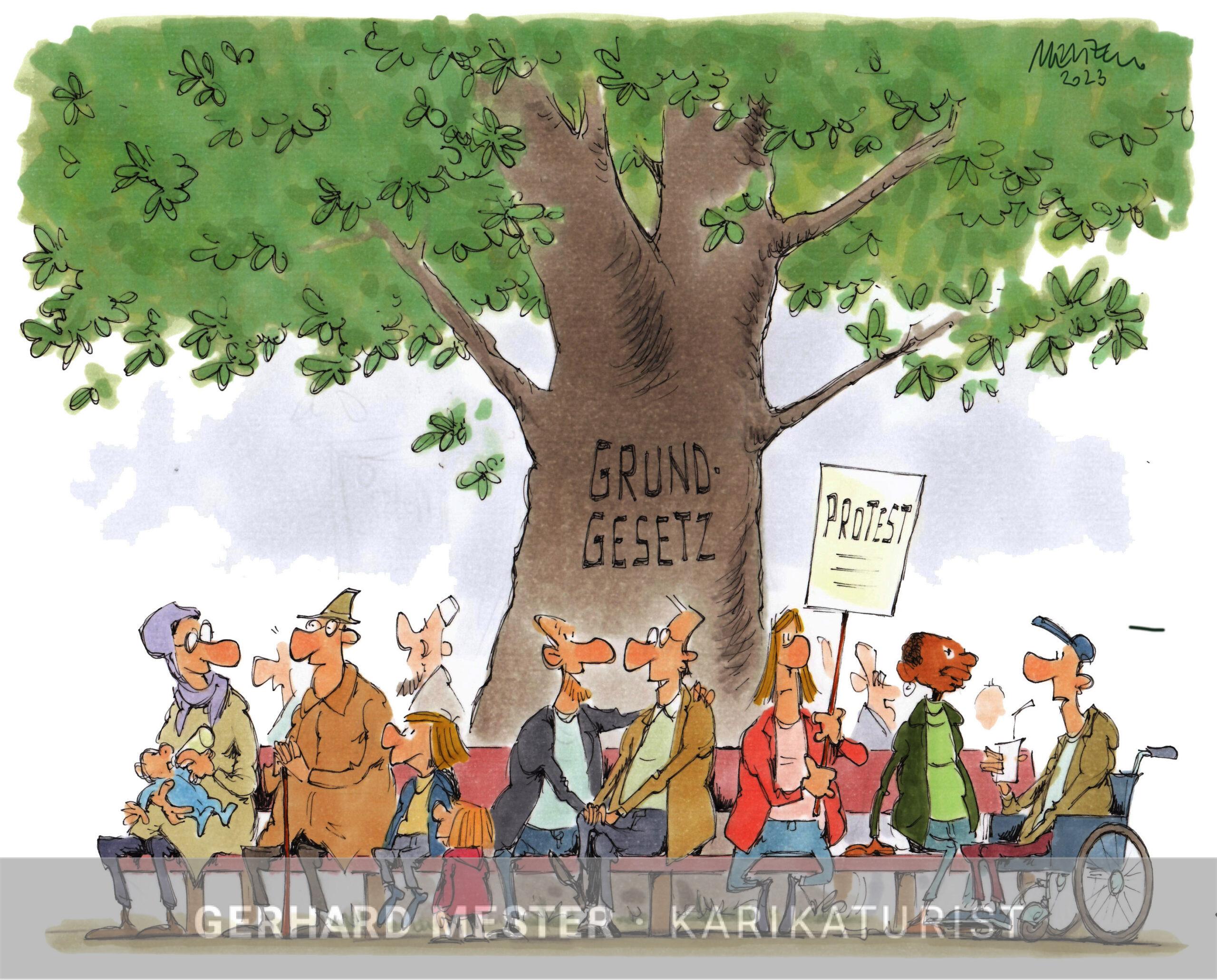 Zum 75jährigen Jubiläum des Grundgesetzes im Jahr 2024 gab die Landeszentrale ein Sonderheft der Reihe Politik&Unterricht heraus, in dem die Grundrechte didaktisch aufgearbeitet wurden. Grundlage dieser Publikation sind 24 Karikaturen zu den 20 Grundrechtsartikeln unserer Verfassung.