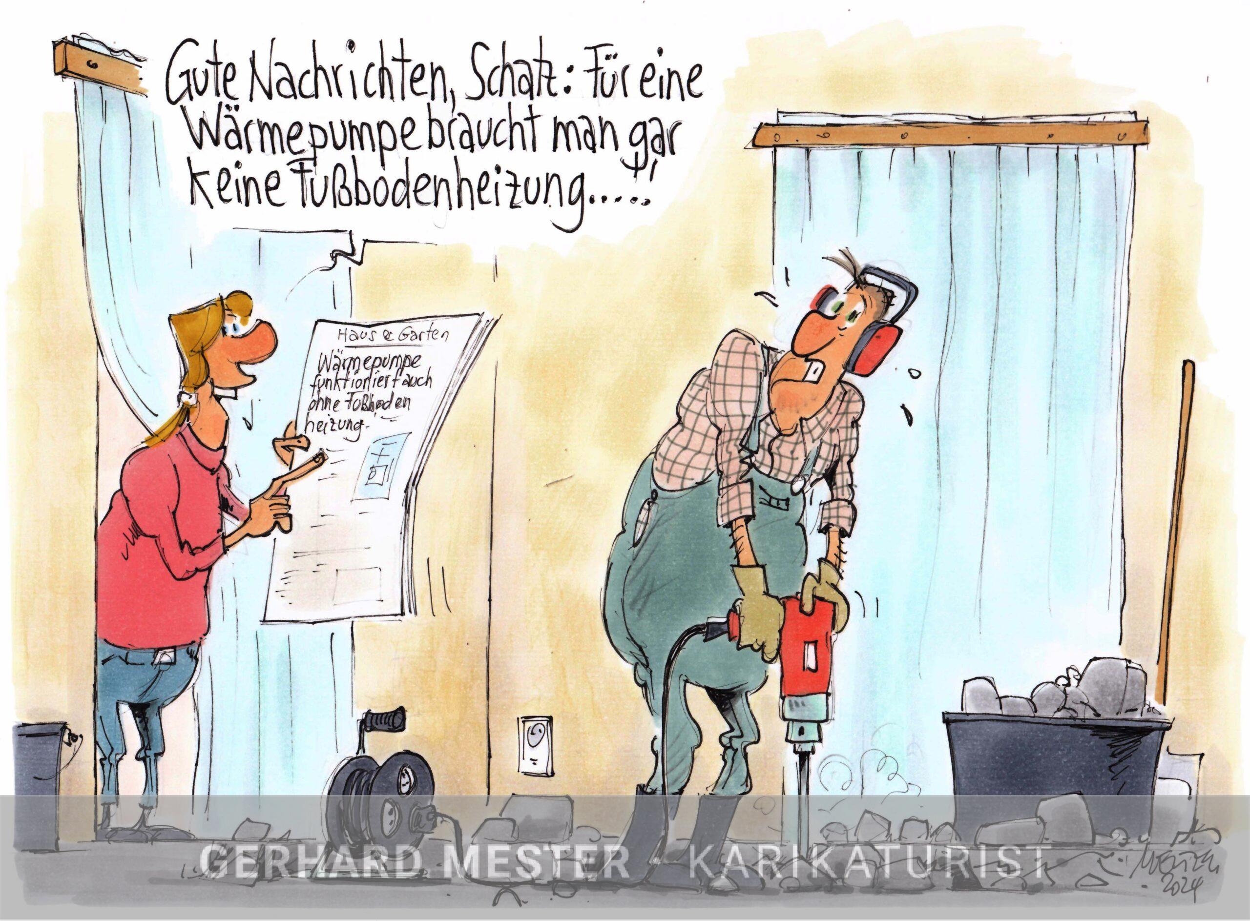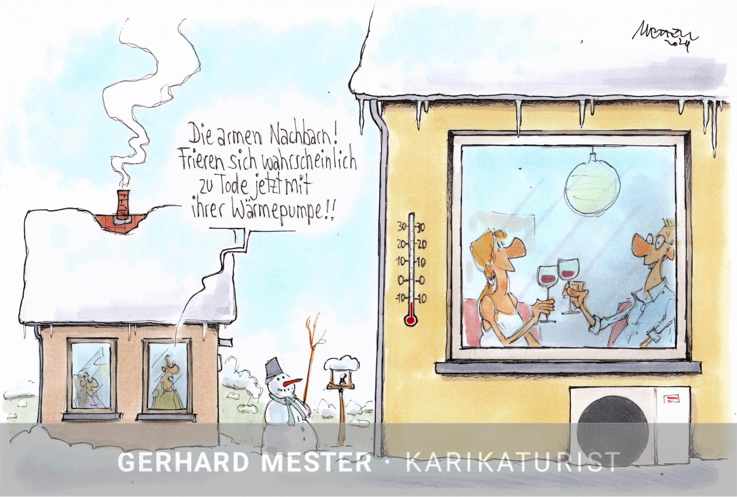 In den Jahren der Ampelkoalition waren „Habecks Wärmepumpen“ monatelang das große Aufregerthema. Die wirtschaftlich wie ökologisch absolut vernünftige Technologie wurde politisch derart zerredet und denunziert, dass am Ende der Einbau von Wärmepumpen trotz staatlicher Förderung sogar zurückging. Die Energie- und Klimaschutzagentur Baden-Württemberg versuchte im Nachgang die Debatte zu versachlichen und aufzuklären. Mit einer Broschüre zum Thema Wärmepumpen, deren Kern: 10 Karikaturen.